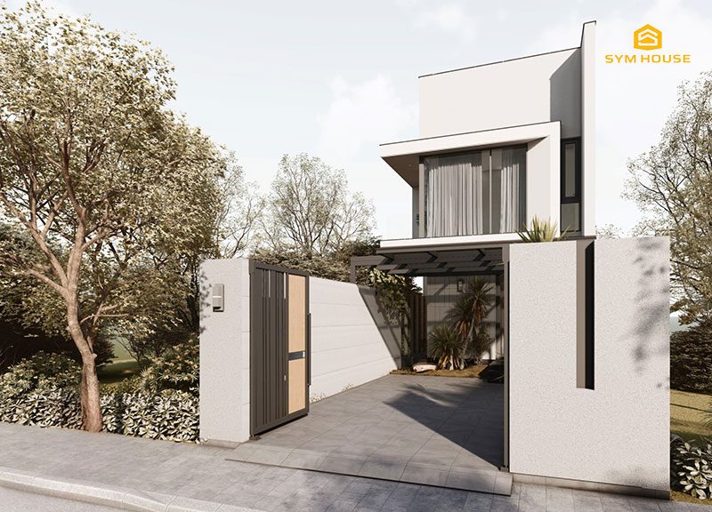 Mặt tiền của ngôi nhà phố 2 tầng AA’s House được Sym House thiết kế với sự cân nhắc tỉ mỉ, tạo nên một vẻ đẹp hiện đại và ấn tượng ngay từ cái nhìn đầu tiên. Bề ngoài của ngôi nhà thường được lựa chọn từ các vật liệu chất lượng cao như gạch, đá kết hợp với vật liệu khác như gỗ và kính, tạo nên sự hài hòa giữa sự cứng cáp và tính thẩm mỹ.